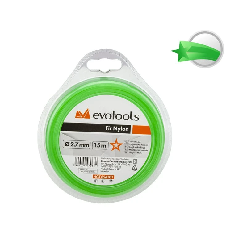 Fir Motocoasa Nylon, Stea, 2.7mm, 15m, EvoTools